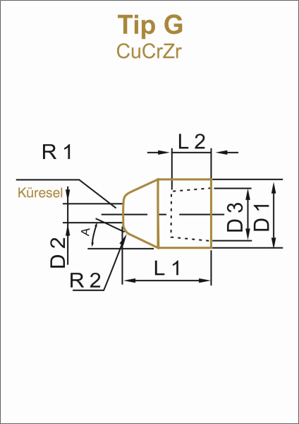 Tip-G 16 MM CuCrZr C18150 Kep Elektrot